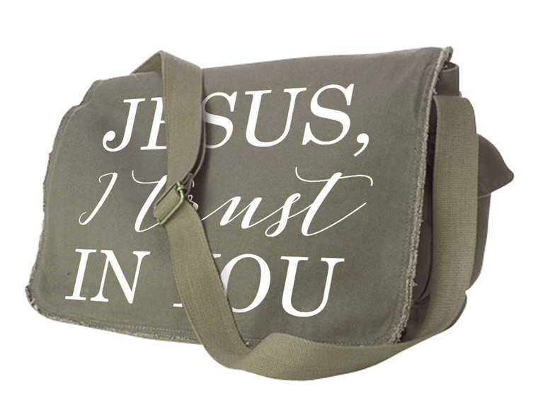 Take your faith to the streets with this Jesus, I Trust in You Messenger Bag! The quote is printed on a khaki green and reads, "Jesus, I trust in you".