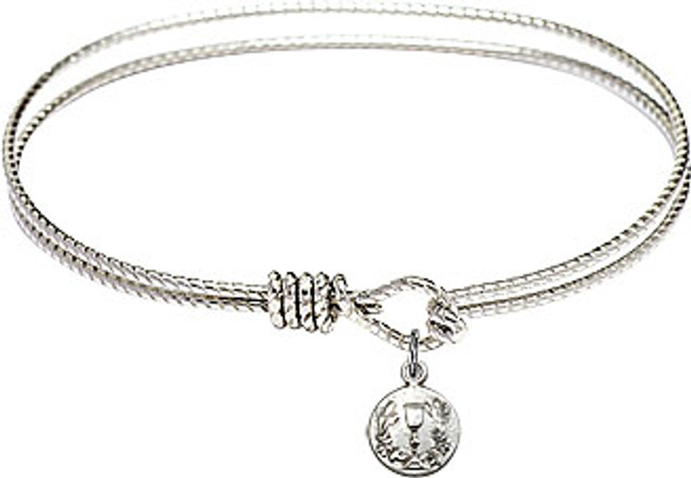 7 1/4 inch Oval Eye Hook Rhodium Bangle Bracelet with a Pewter Communion Chalice charm.