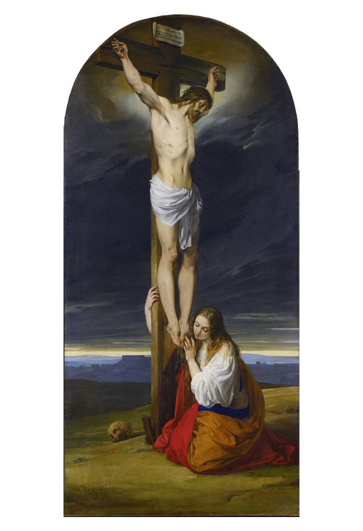 A unique portrayal of Our Lord and Mary Magdalene at the Crucifixion.