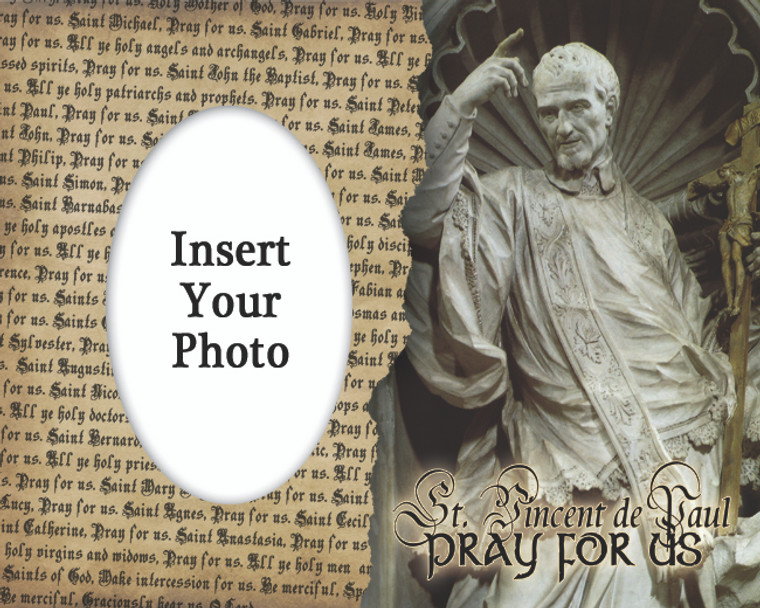 The St. Vincent de Paul photo frame accents your photo with a beautiful and bold image of St. Vincent de Paul under a glossy finish while underlining it with a simple and inspiring invocation to the saint. The St. Vincent de Paul photo frame makes an excellent gift for the sacrament of confirmation, baptism, and any occasion.