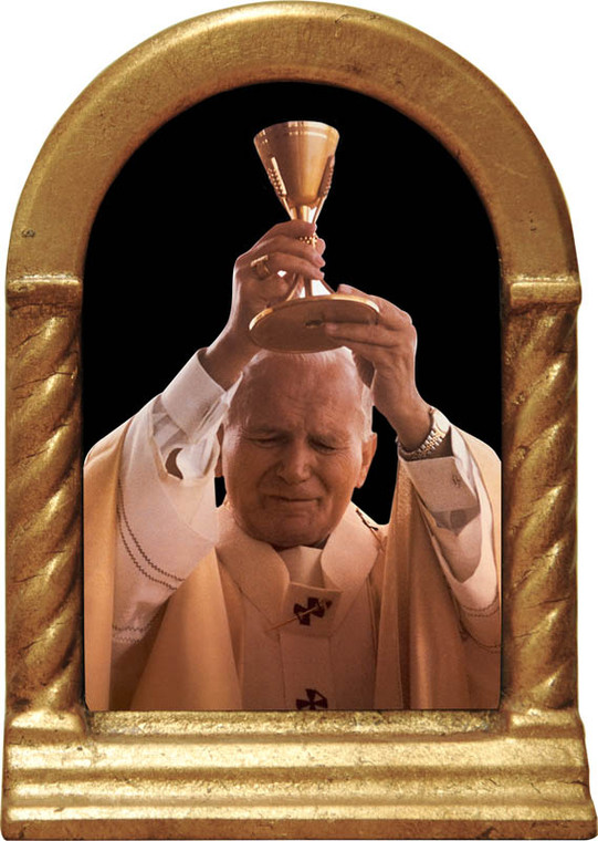 Our Pope John Paul II desk shrine is the perfect meditative and devotional gift of choice. With its beautiful imagery and elegant white marble or gilded gold leaf finish, this Pope John Paul II desk shrine will adorn your home for years to come.