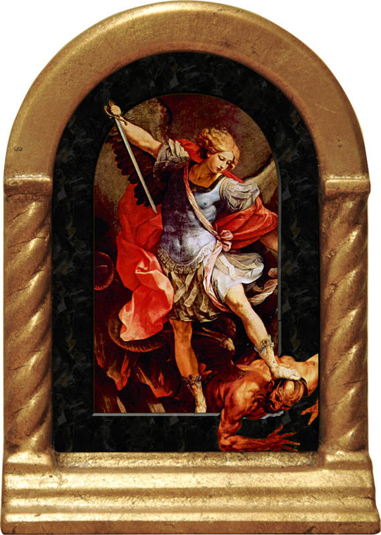 Our St. Michael the Archangel desk shrine is the perfect meditative and devotional gift of choice. With its beautiful imagery and elegant white marble or gilded gold leaf finish, this St. Michael the Archangel desk shrine will adorn your home for years to come.