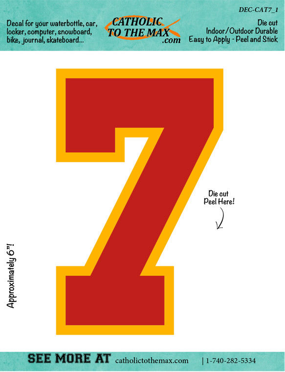 This vinyl decal features the number 7. It comes in red and white.